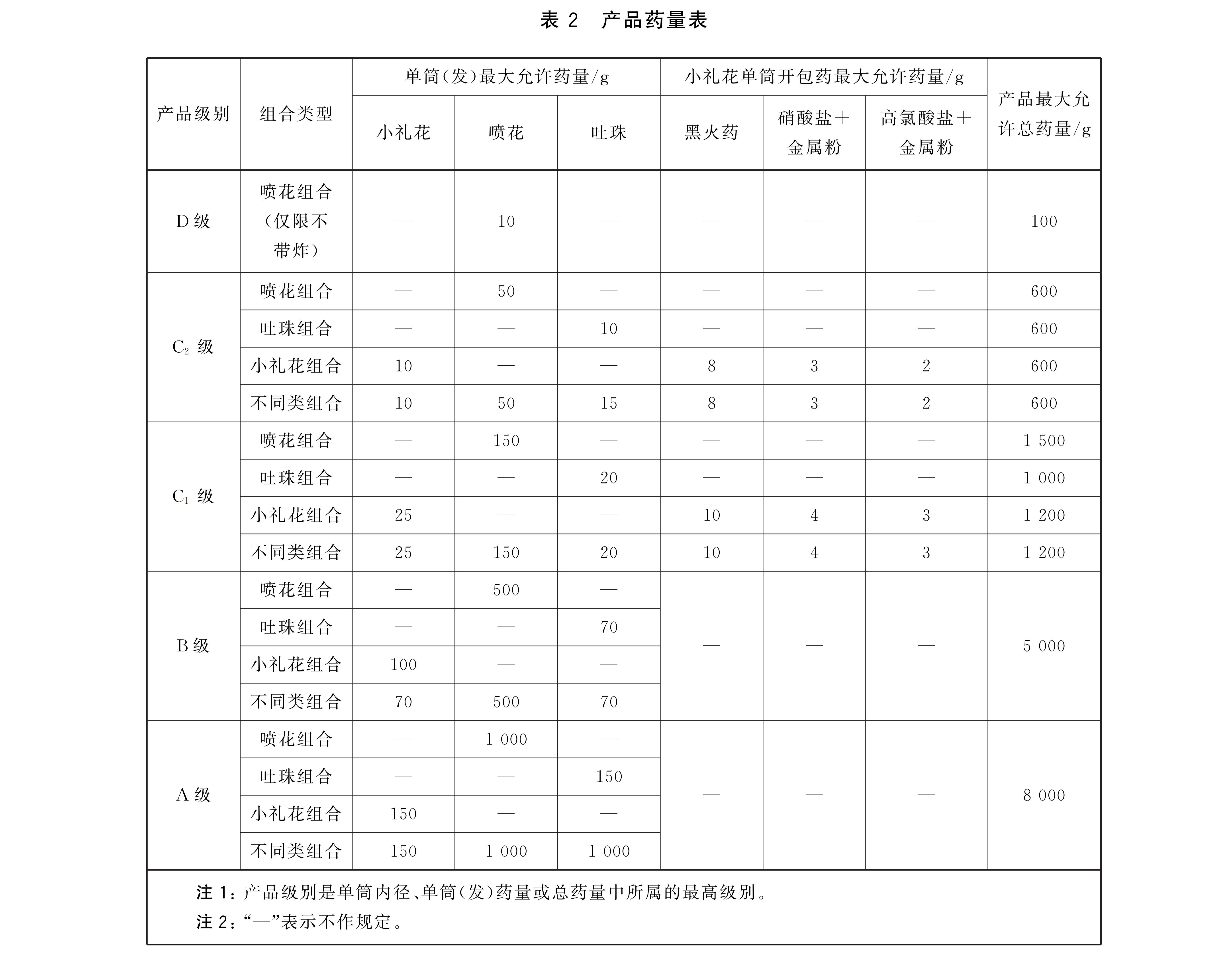 7.7.2 单个产品允许药量、单筒药量及开包药量要求见表2。