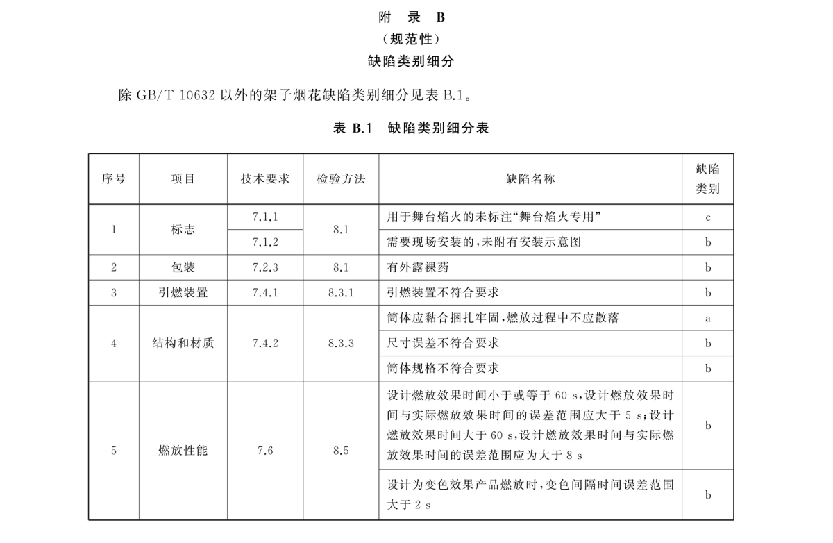 5.1按照GB10631规定,消费类别为专业燃放类,产品级别为B级。